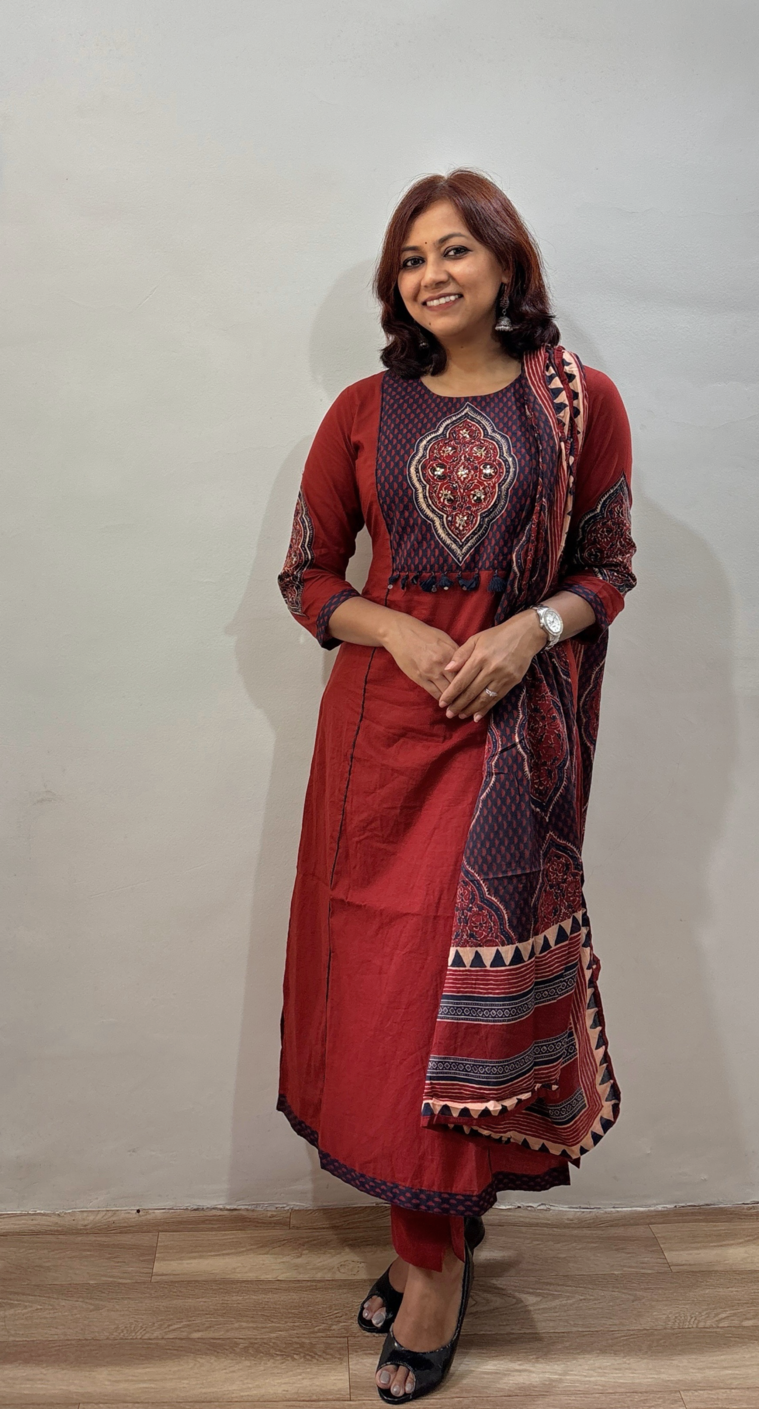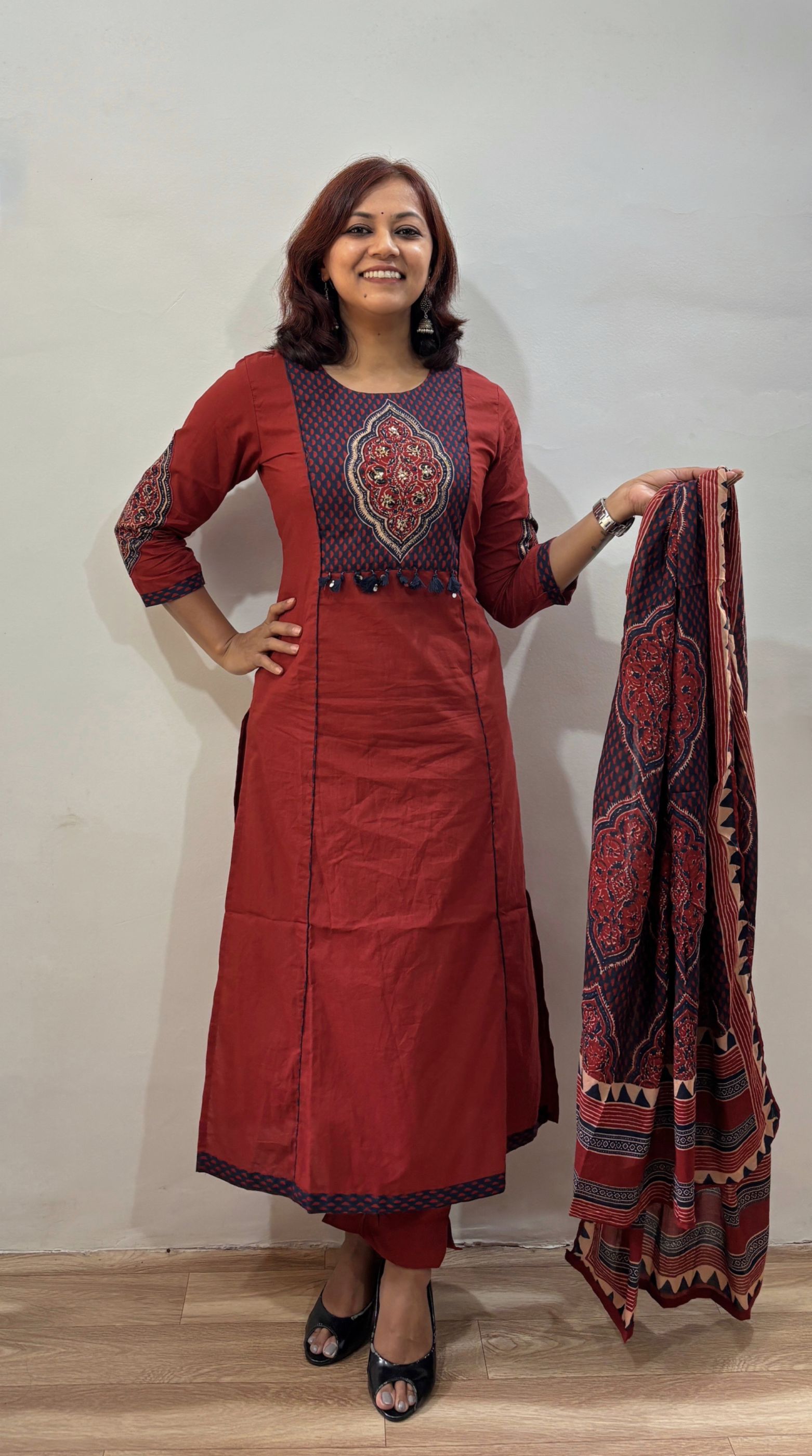 Work - The yoke features an intricately designed patch panel with elegant bead and bindi work hand and decorative tassels.